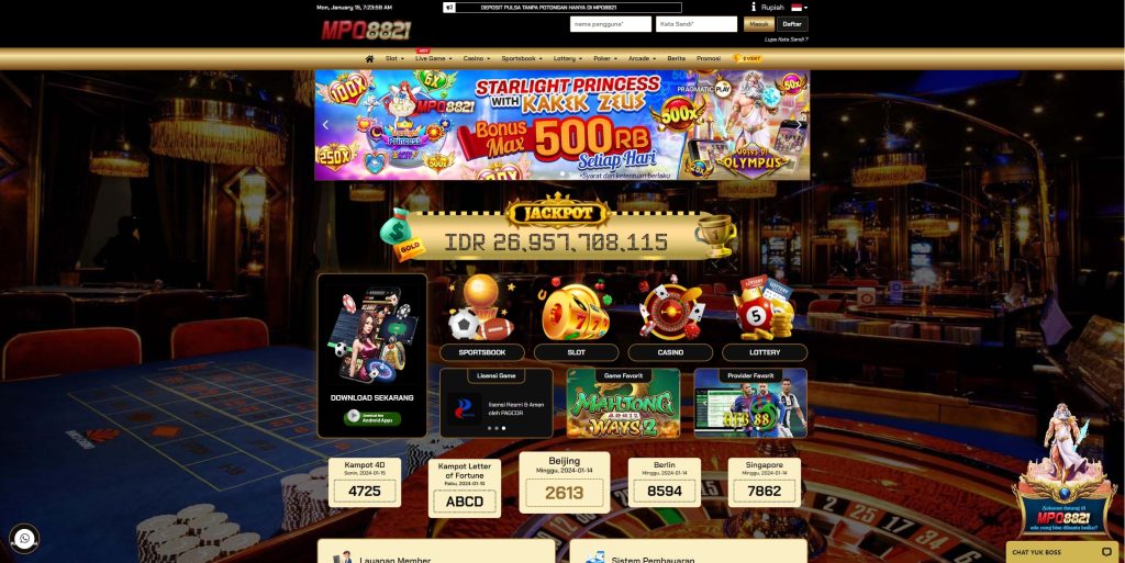 MPO8821 adalah platform judi online yang menghadirkan beragam permainan slot yang menarik, lengkap dengan suasana yang nyaman dan aman. Sebagai bagian dari industri perjudian online, MPO8821 telah tumbuh dan berkembang sejak didirikan, memberikan pemainnya akses eksklusif ke serangkaian permainan slot berkualitas tinggi yang dirancang untuk memberikan pengalaman bermain yang tak tertandingi. Dengan berbagai jenis slot dari penyedia perangkat lunak terkemuka, MPO8821 memastikan bahwa setiap pemain dapat menemukan sesuatu yang sesuai dengan selera mereka. Dari slot klasik yang timeless hingga inovasi terbaru dalam desain permainan, MPO8821 mempersembahkan variasi yang tak terbatas untuk meningkatkan tingkat kepuasan pemain.
